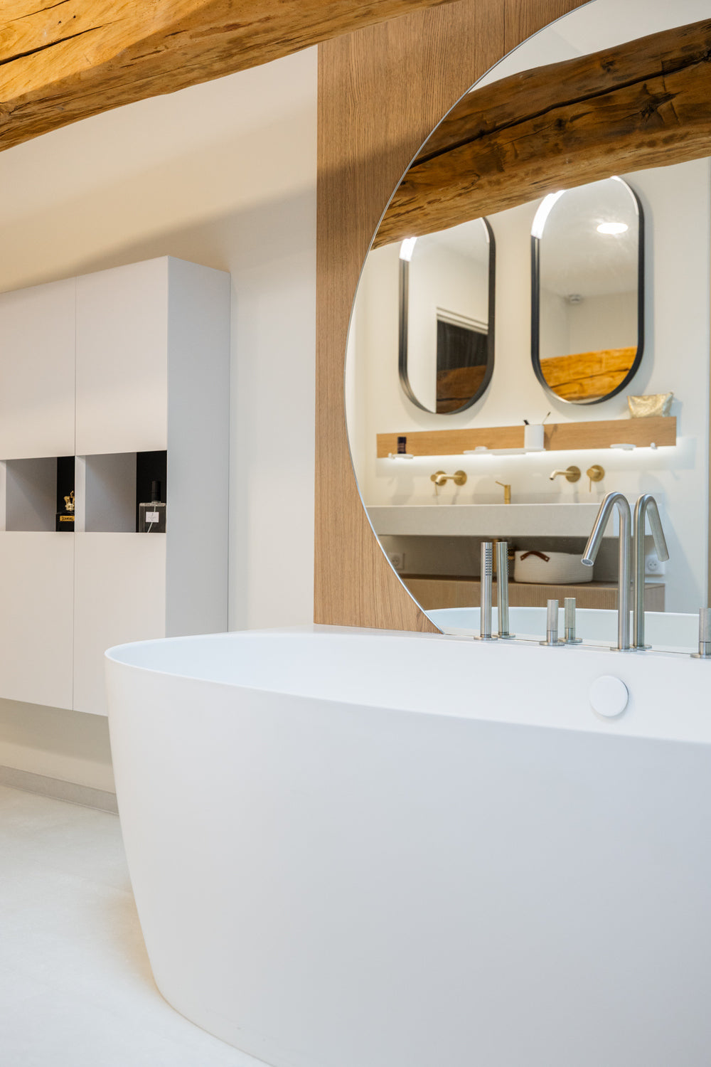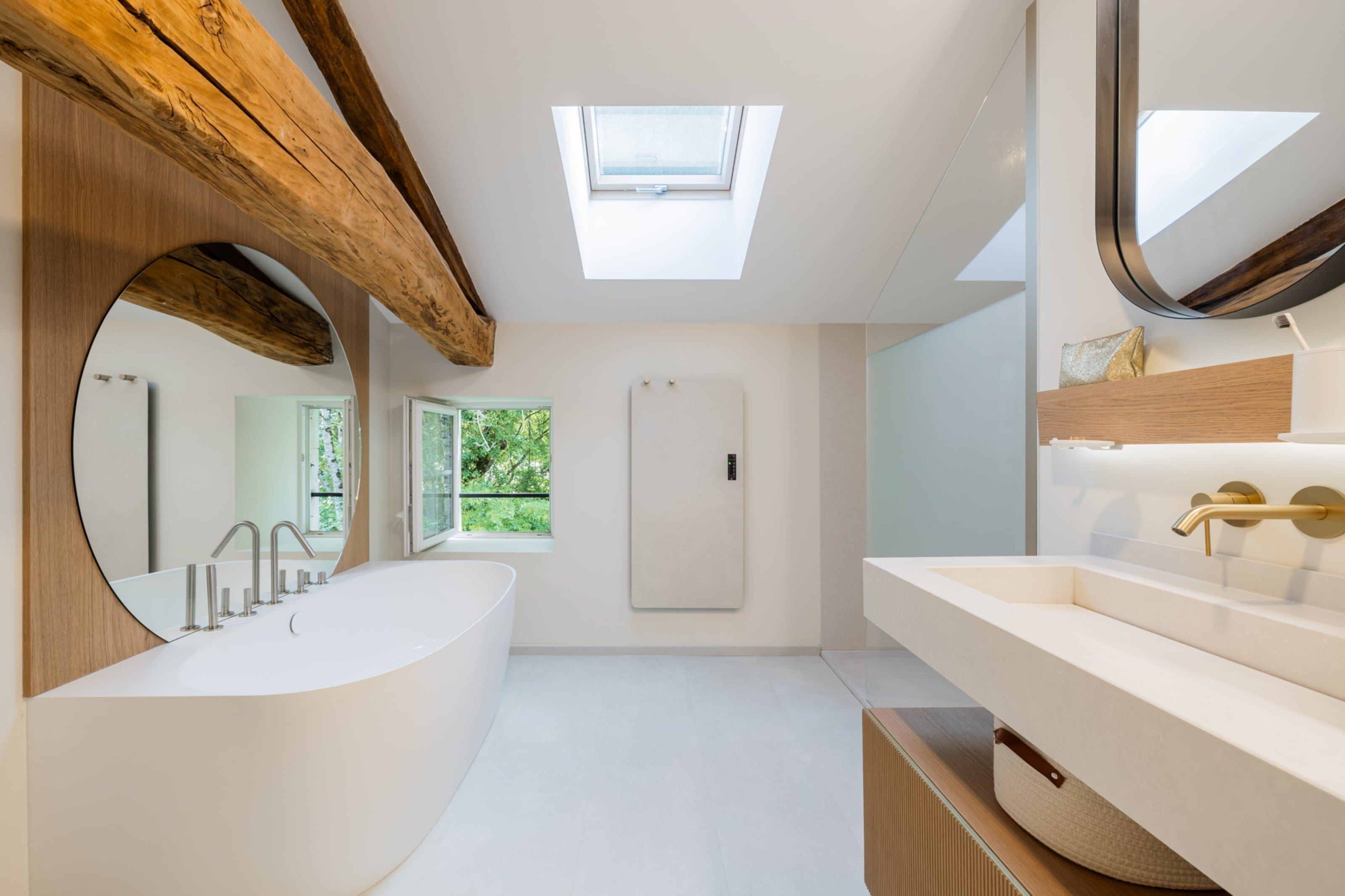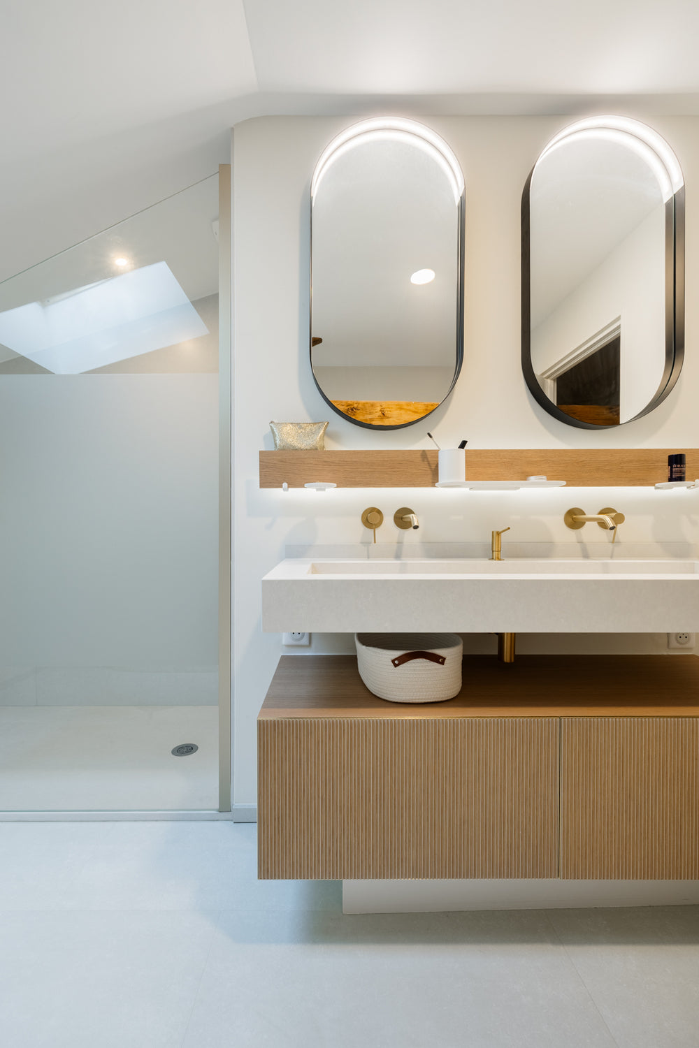 Pensée comme un lieu de calme et de lumière, cette salle de bain incarne notre vision d’un espace intime, juste et durable.
