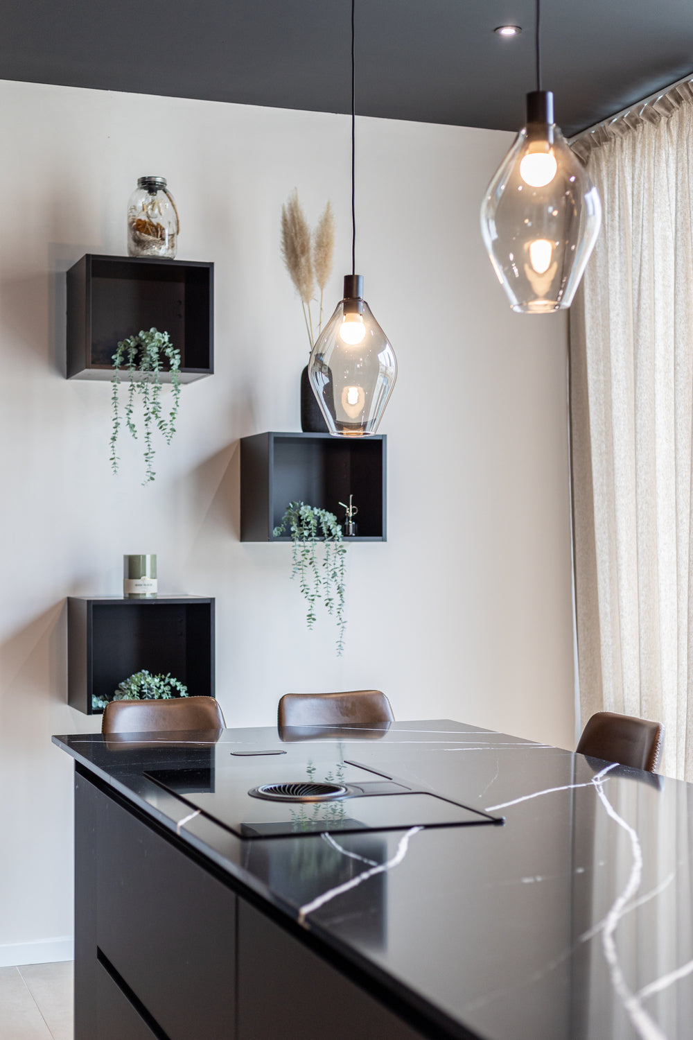 C'est dans une grange située à La Couronne que nos clients ont entrepris de lourds travaux de rénovation. Cette demeure devait intégrer un style contemporain aux lignes épurées, minimalistes. Le mélange des matériaux haut de gamme a pris vie dans un espace très lumineux grâce aux grandes baies mettant en valeur l'omniprésence du noir. Les cubes décoratifs cassent ce côté très linéaire de l'agencement. Tous les éléments s'immiscent discrètement dans le décor de cette cuisine Full Black, y compris l'électroménager et le sanitaire.