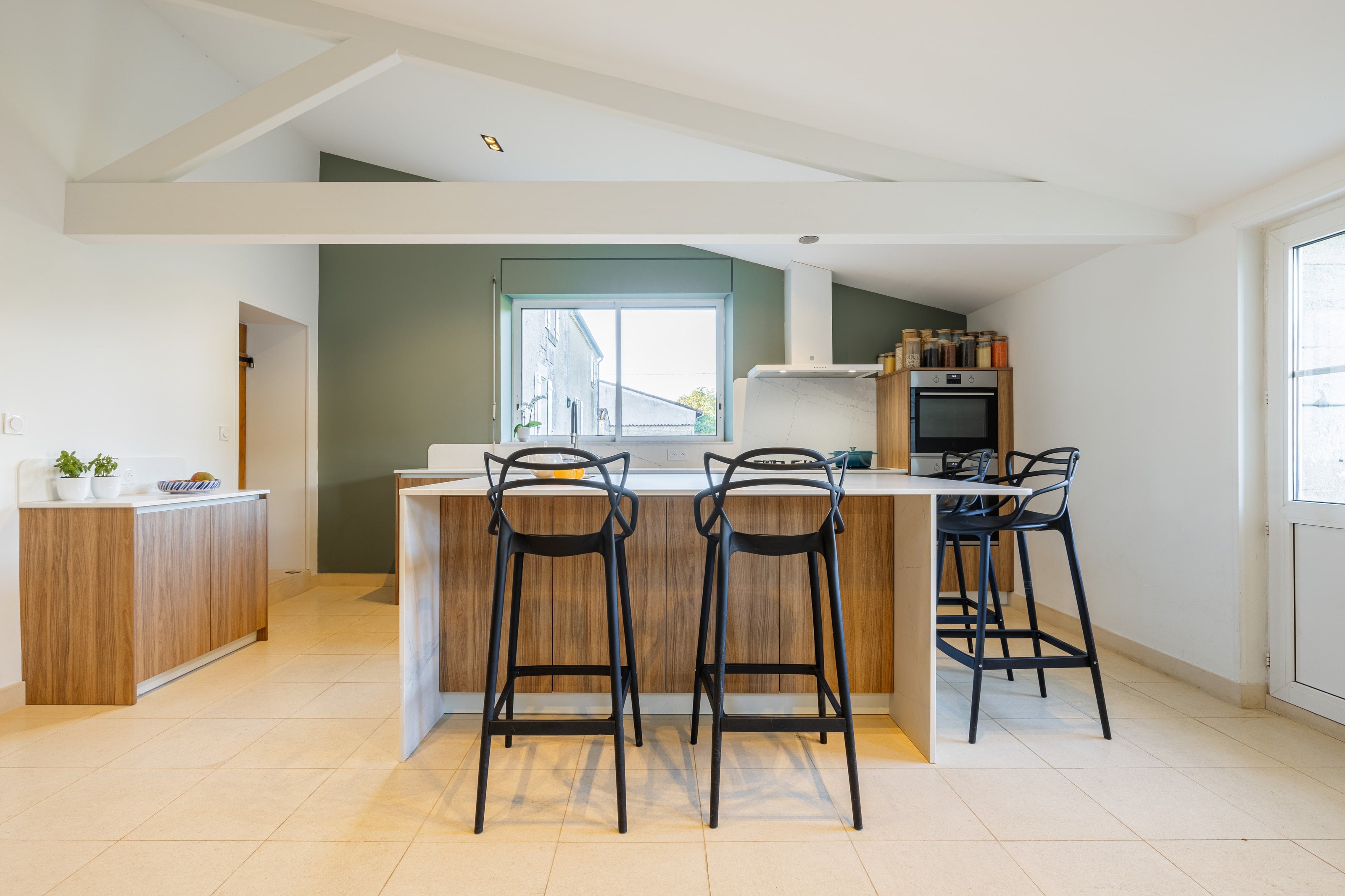 Dans cette élégante maison de maître du cognaçais, la cuisine s’installe avec douceur, comme si elle avait toujours été là.