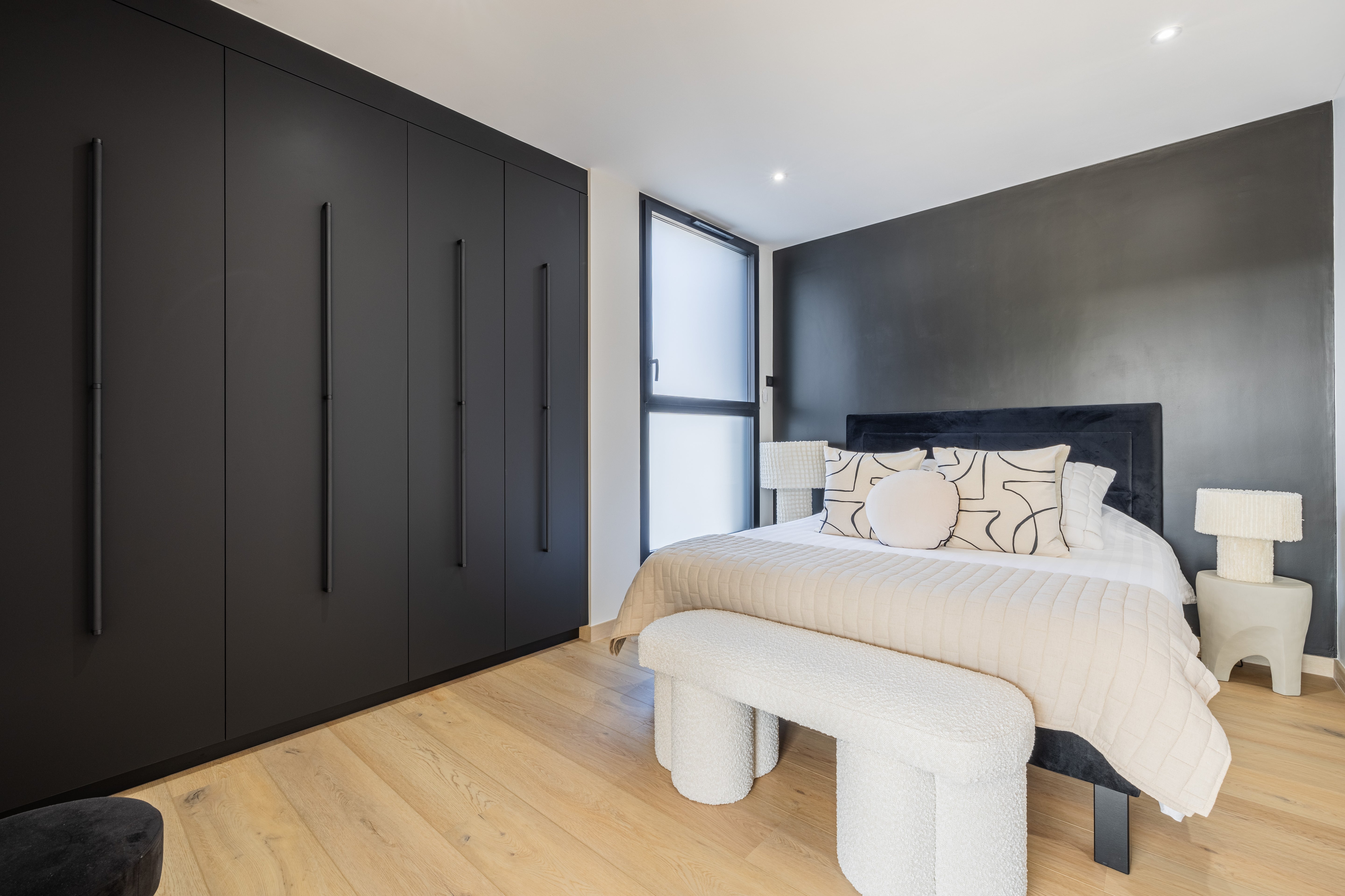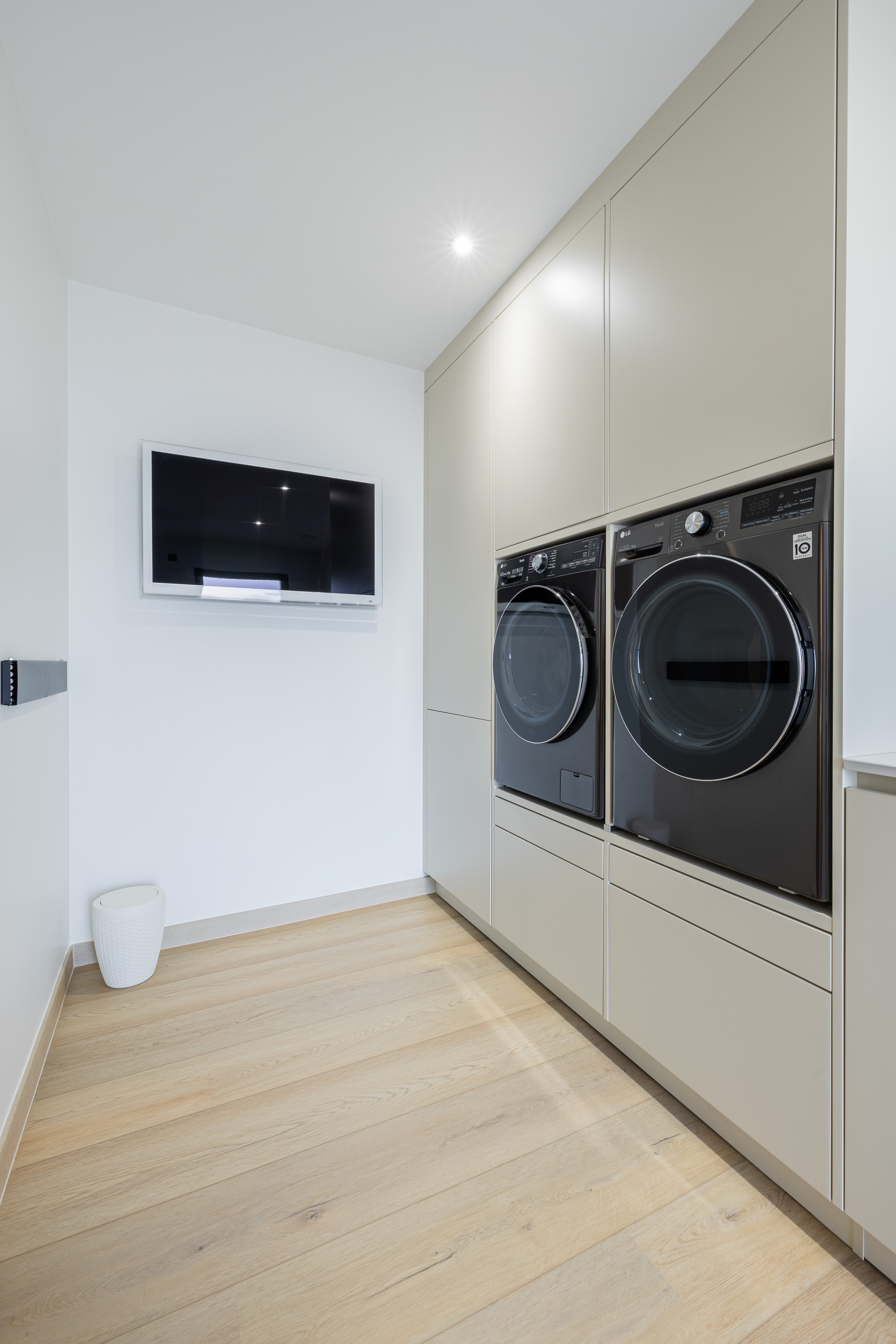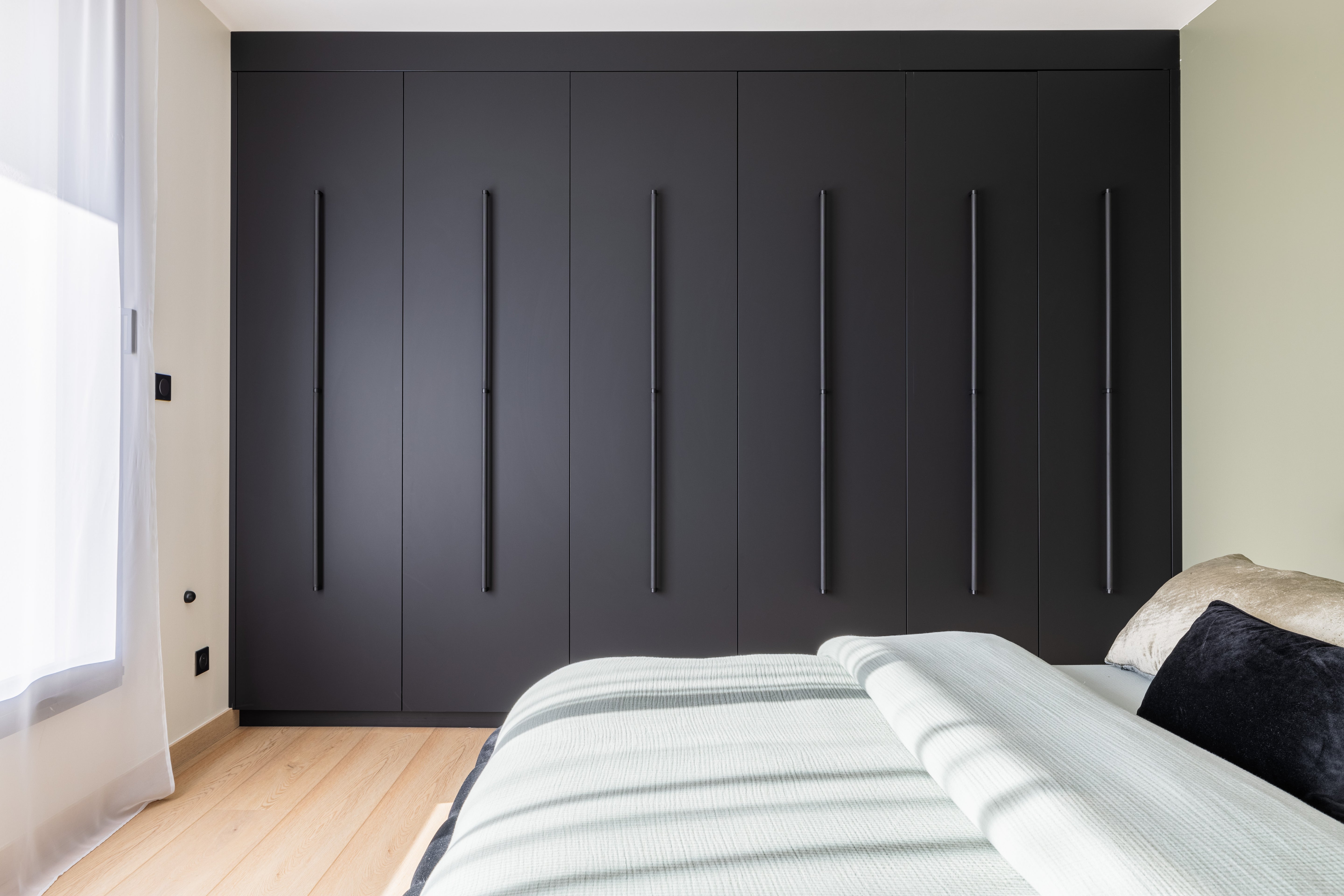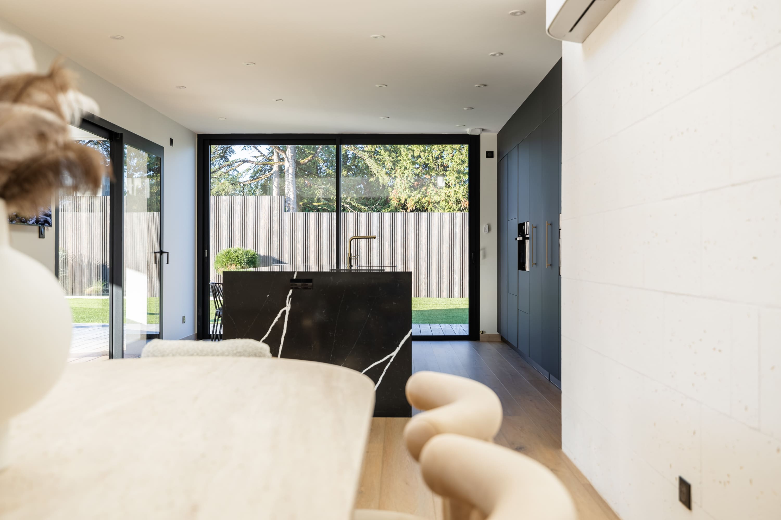 L’invisibilité y est assumée : intégration parfaite, rangements dissimulés, passage camouflé. Rien ne distrait l’œil ; tout est à sa place.