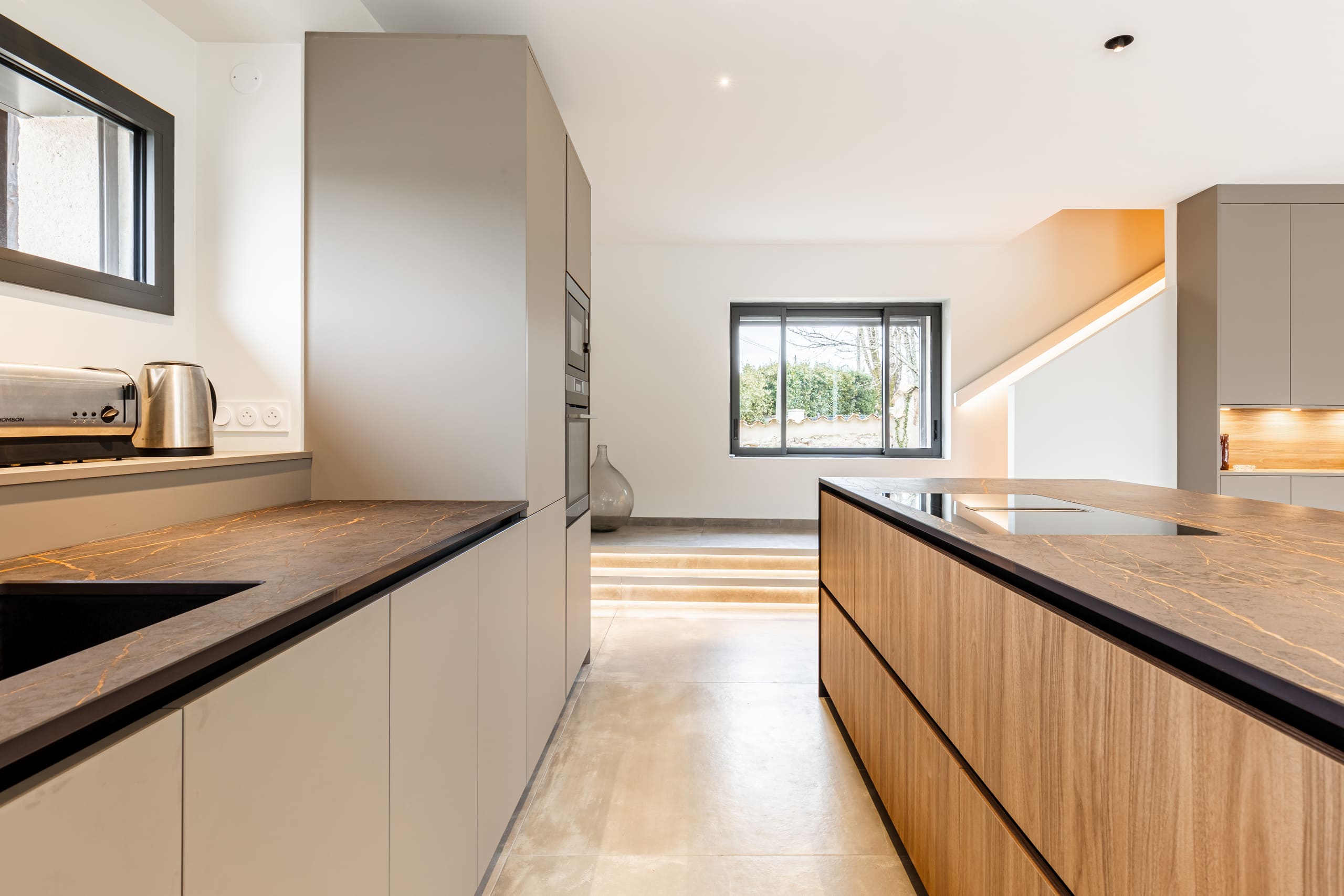 Un petit détour dans la campagne Cognaçaise pour découvrir cette réalisation aux couleurs douces et intemporelles. 🎨Cette cuisine est sur son 31 en permanence. Simple, mais jamais simpliste. Les plans de travail en Dekton Laurent apportent un contraste subtil avec les façades en bois aux notes caramel. Les leds dissimulés de part et d'autre viennent sublimer les lignes et l'architecture de la pièce.Armoires, éléments bas et portes sont signés Armony Cucine, le fabricant italien aussi élégant que solide.